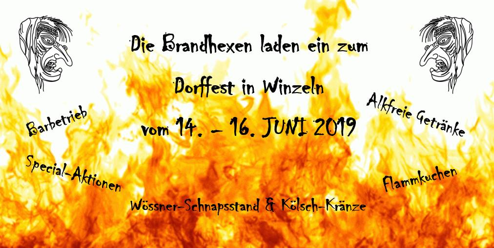 Mitwirkende Gastzünfte sind: - Showtanzgruppe Mühlheim/Renfritzhausen - Weiherhexen Empfingen e.V. - NZ Truchtold Bären 2012 e.V. - Tanzgruppe 4:4 VfB Bösingen - Narrenzunft Glatten 2002 e.V. - Laibedal-Hexa 2014 Bad Immenau e.V. - Zunftgarde Hochmössingen - Galgenbühl-Hexen Marschalkenzimmern e.V. - Rölezinger Weiber - Erzhexen Fluorn e.V. - Narrenzunft Waldmössingen e.V. - Schenkenhexen e.V. Schenkenzell - Kuba-Hexen - NZ Schalksburg-Ablstadt e.V. - Rappenlochhexen Nussbach e.V. - Waldburghexen vom Wildenstein - Schänzele Hexen Gutach Turm - Stadthexen Blumberg e.V. - Narrenzunft Aichhalden e.V. - GischGeischtHexe e.V. Ein tolles und abwechslungsreiches Programm wird geboten. Ein DJ sorgt für ordentlich Stimmung. Eintritt für Nicht-Häßträger: 6€ Auf Euren Besuch freuen sich die Brandhexen & die Narrenzunft Winzeln